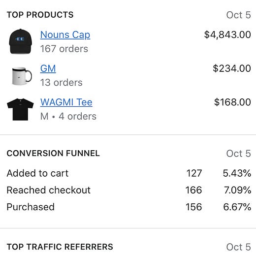 As anyone building products, services and experiences within the Nouns ecosystem, you want more eyes on Nouns because that means more attention on what youâre working on. Then, instead of building an audience or customer base from scratch, you can simply tap into the existing Nouns community.